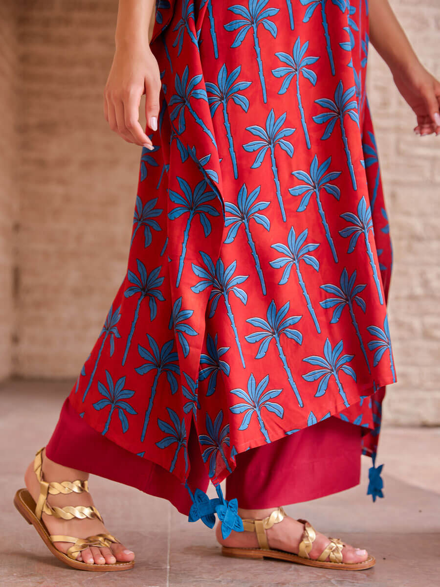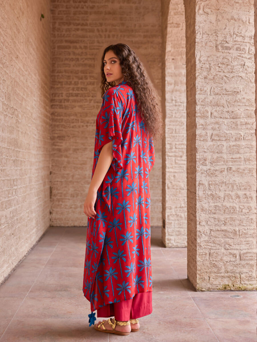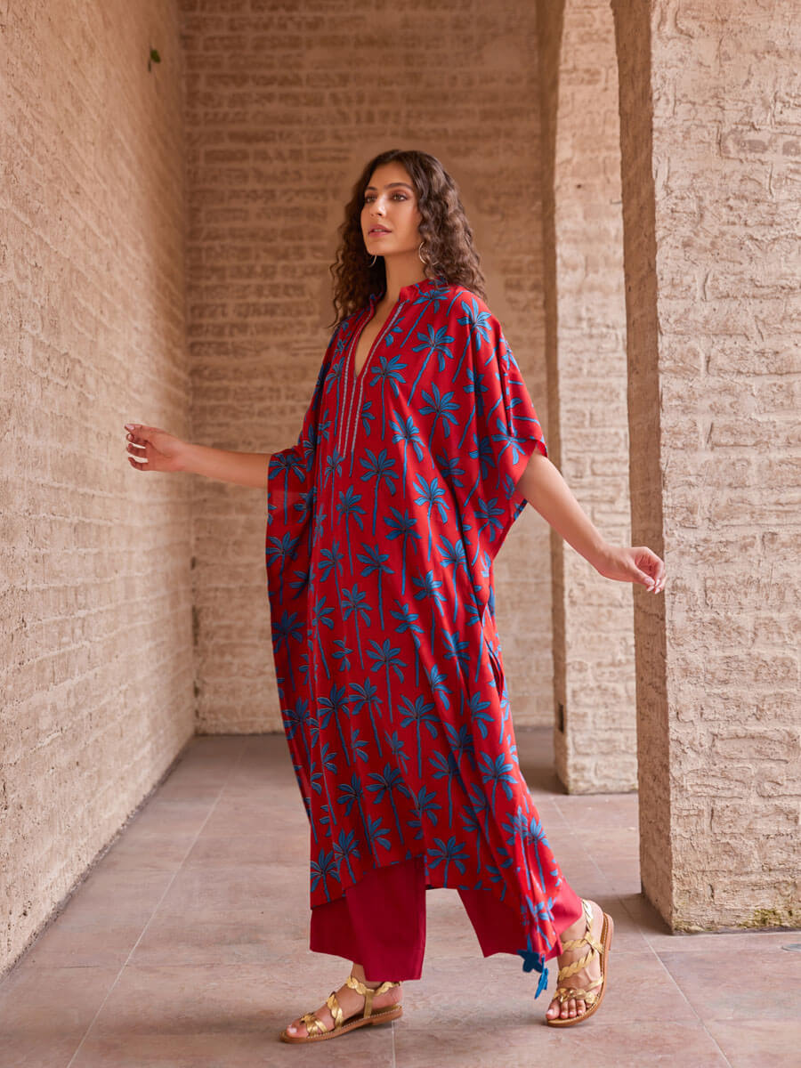 - Set of 2: Comfort-fit modal kaftan kurta + contrasting palazzos
