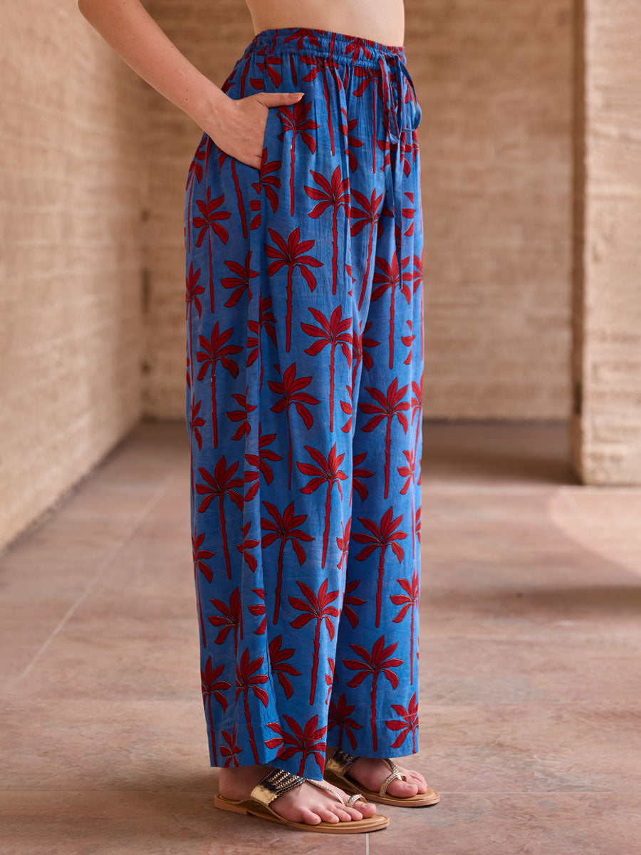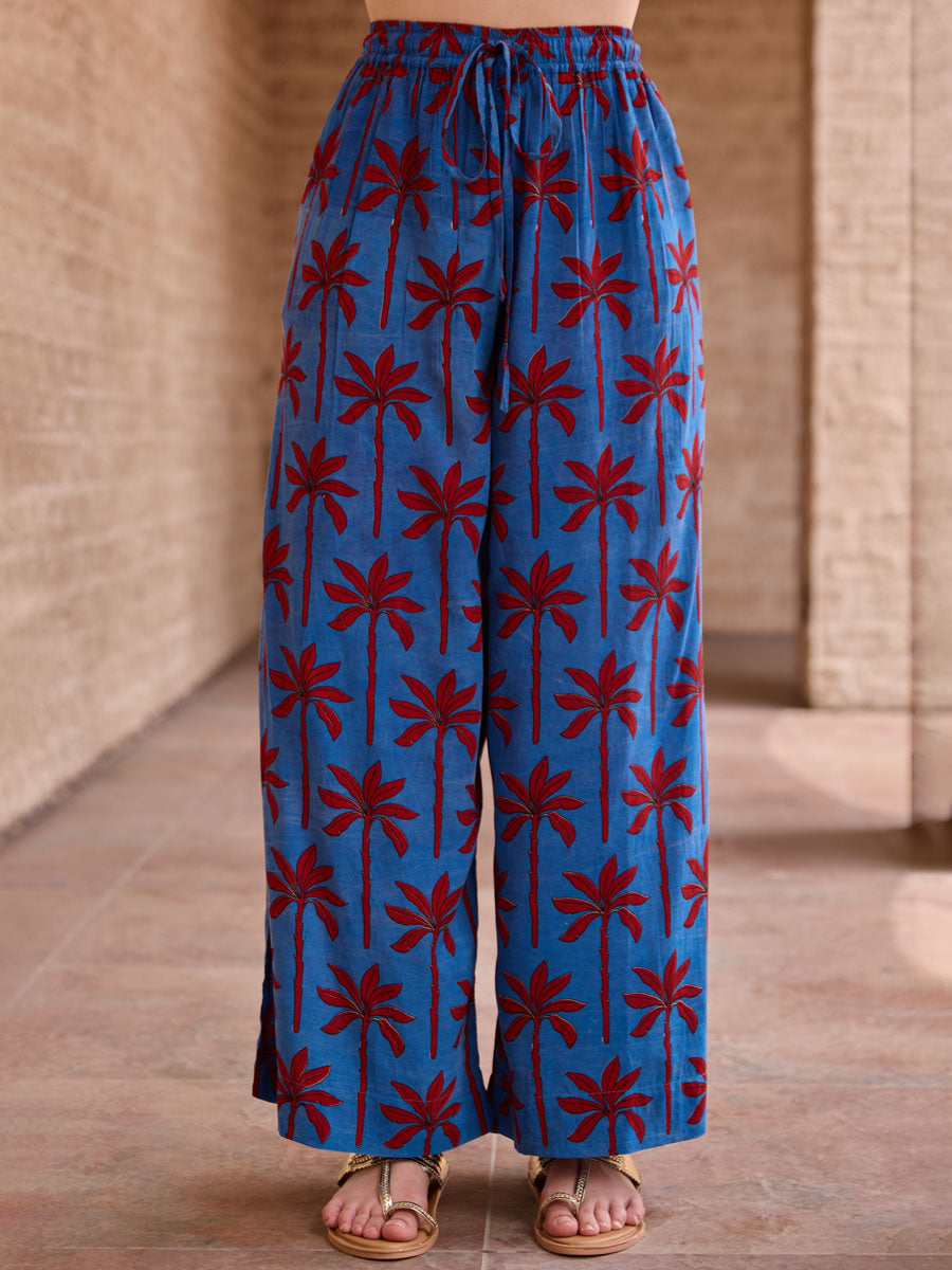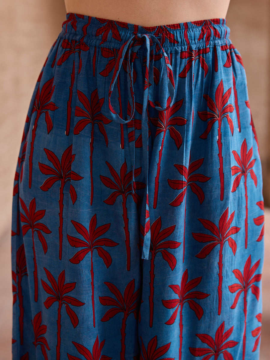 - Indigo Palazzo Pant handcrafted in modal fabric using traditional Bagru dyeing technique