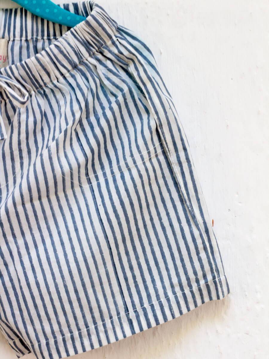 Zebra Lines Grey Organic Cotton Block Printed Shorts