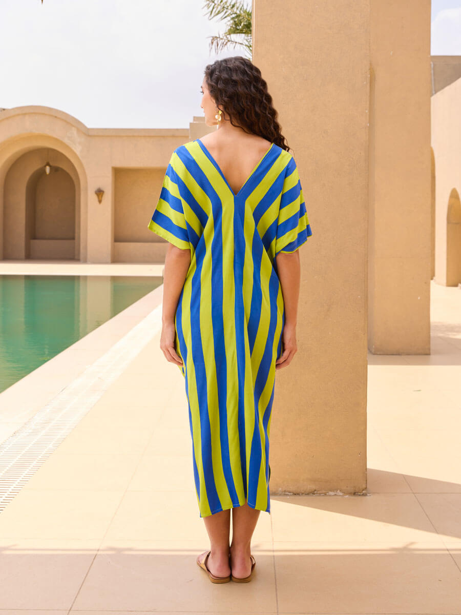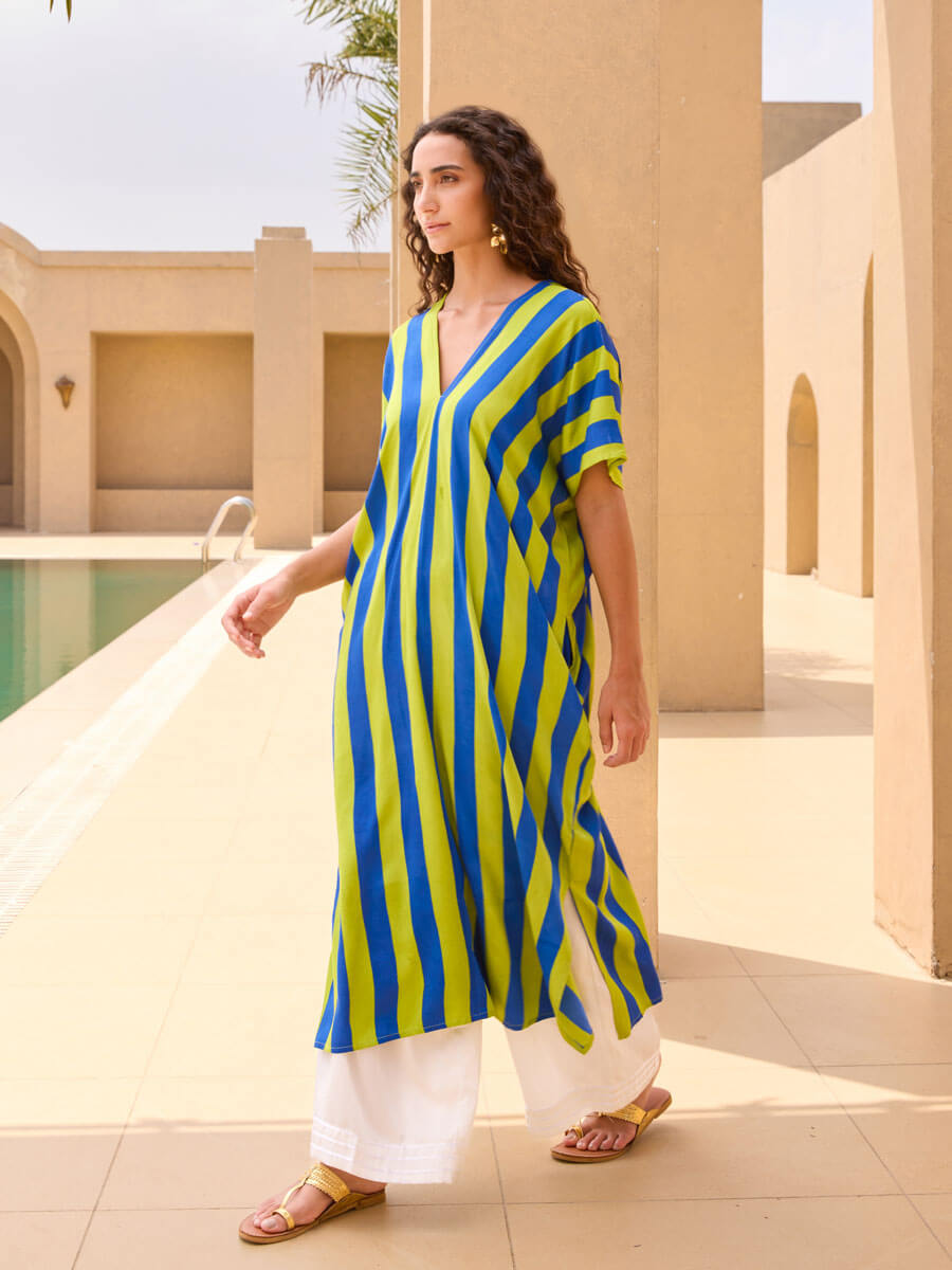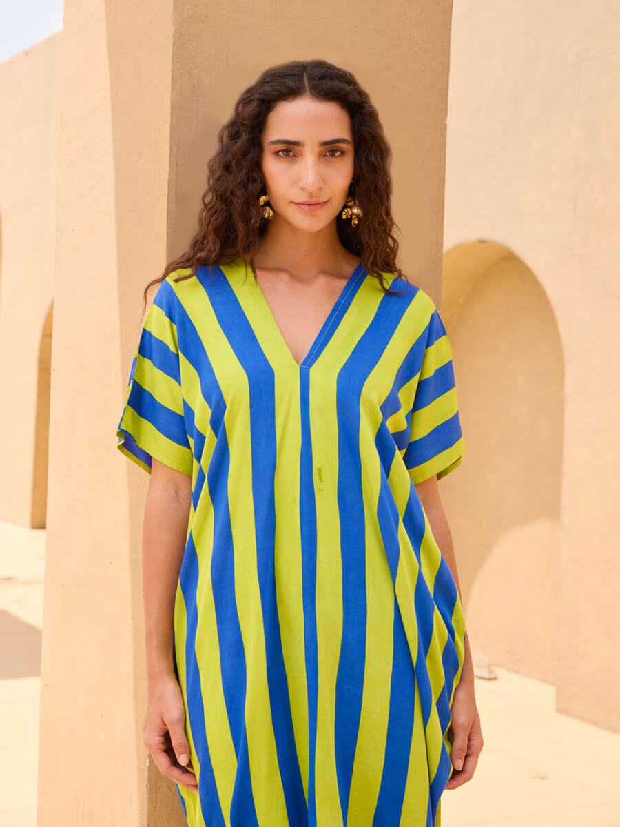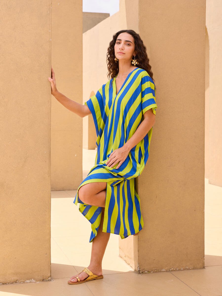 - Designed in bold, statement stripes and a v-neck