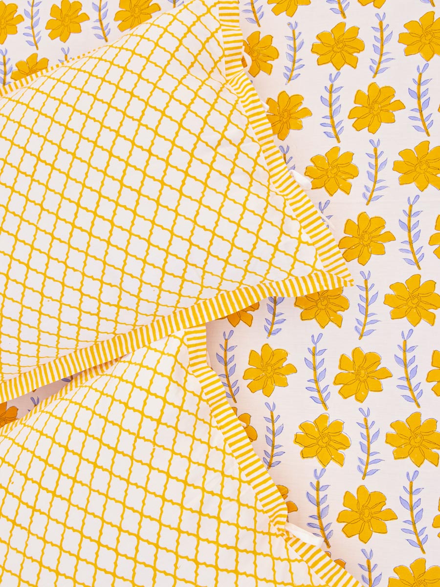 • Sizes: Single - 152 X 229 cm (60 X 90 inch); Double - 244 X 269 cm (96 X 106 inch); King - 274 X 274 cm (108 X 108 inch); Pillow Cover - 46 X 71 cm (18 X 28 inch)