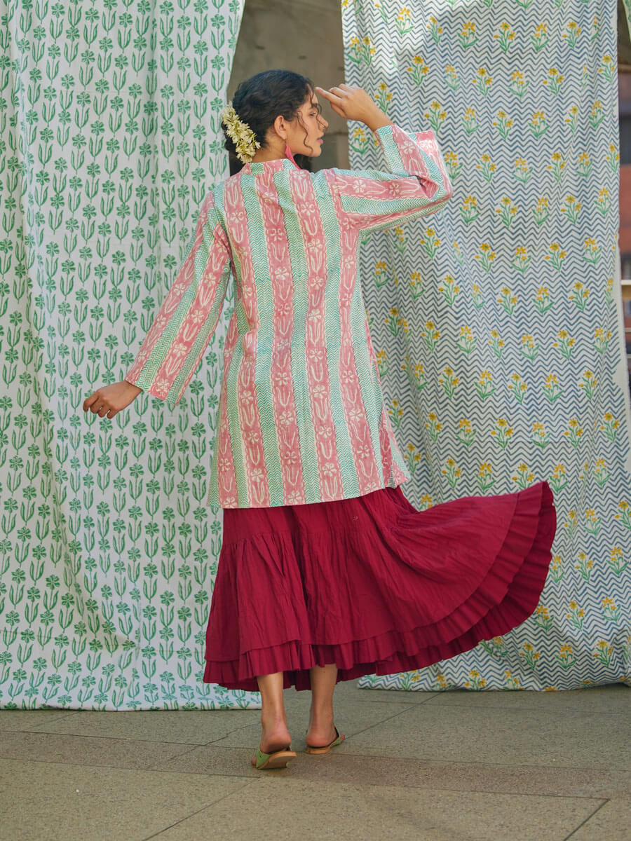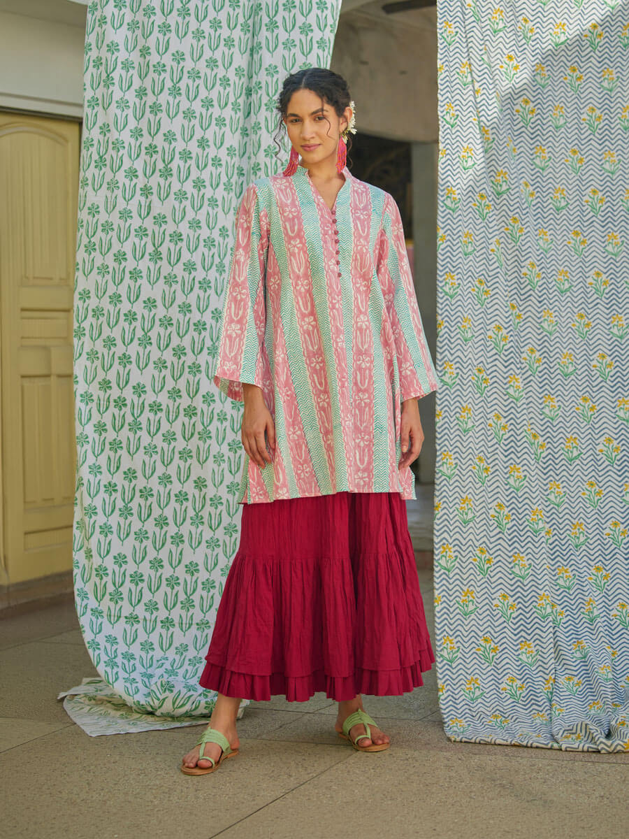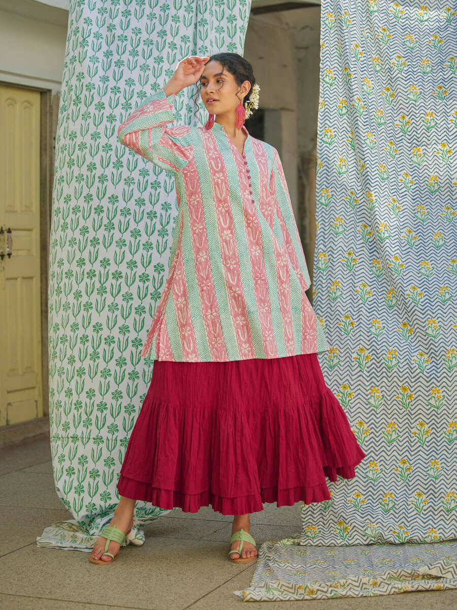 - Soft and breathable cotton kurta and skirt set