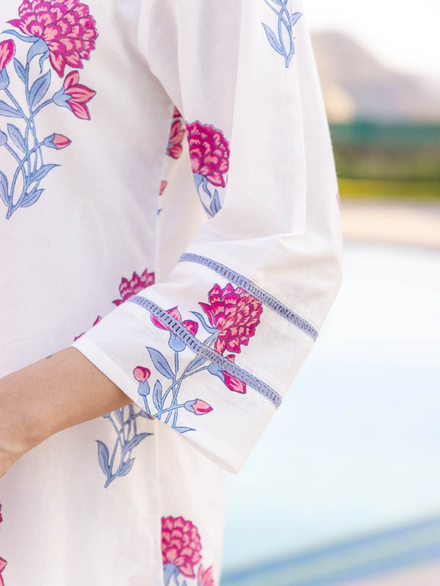This kurta is pre-washed and ready-to-wearHand wash or gentle cycle machine washWash in cold water using a mild detergentDo not soak, wring, or tumble dryDry in shade. Use a warm iron