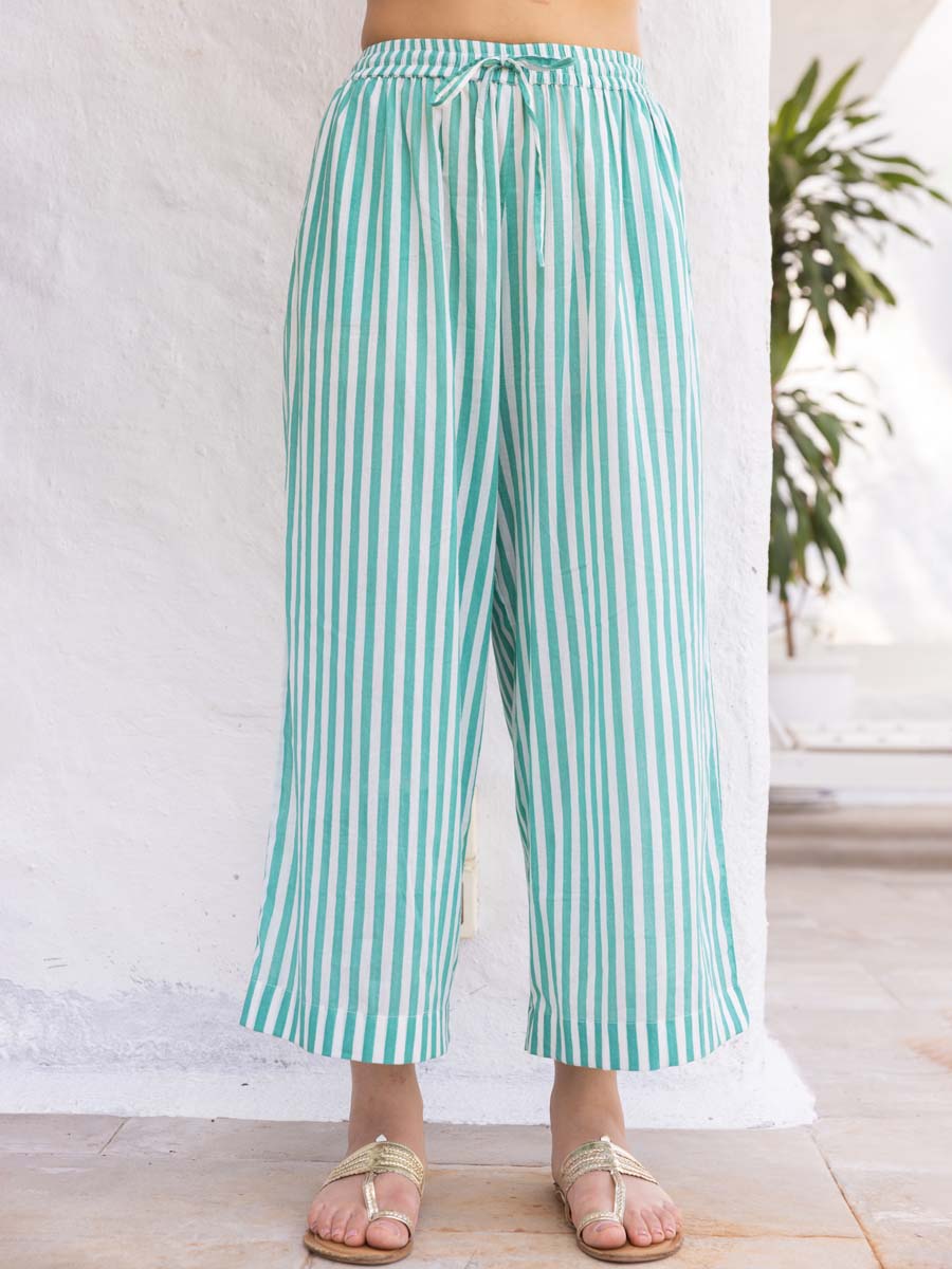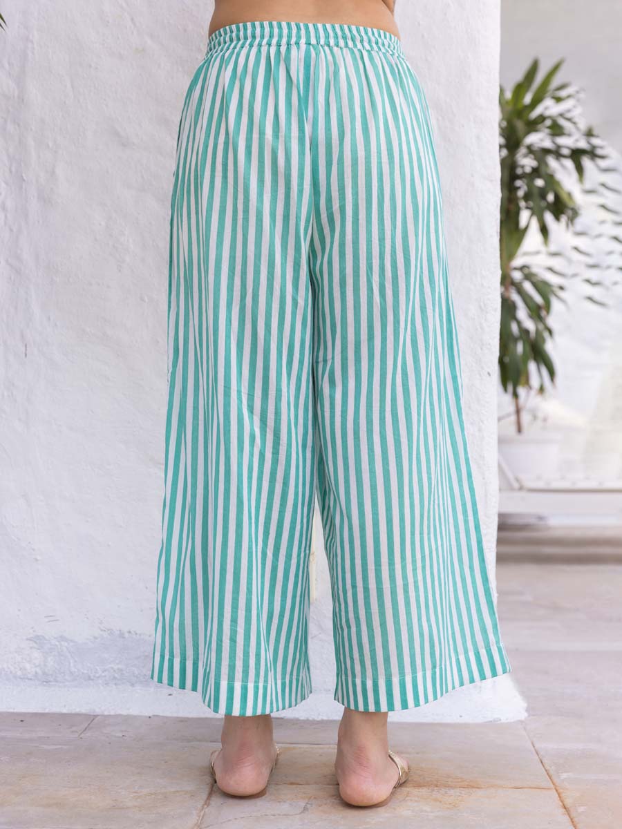 Eden Turquoise Stripes Cotton Palazzo Pants