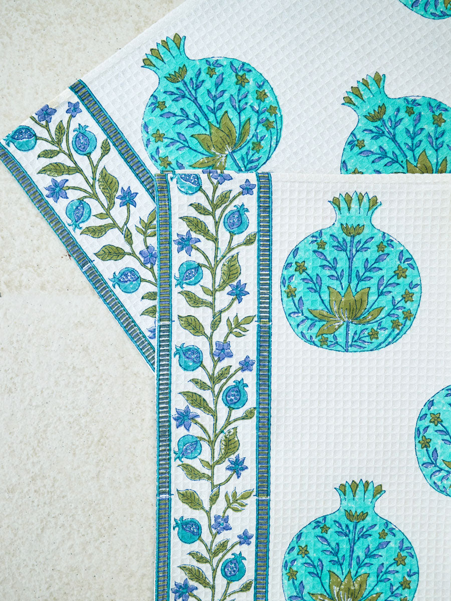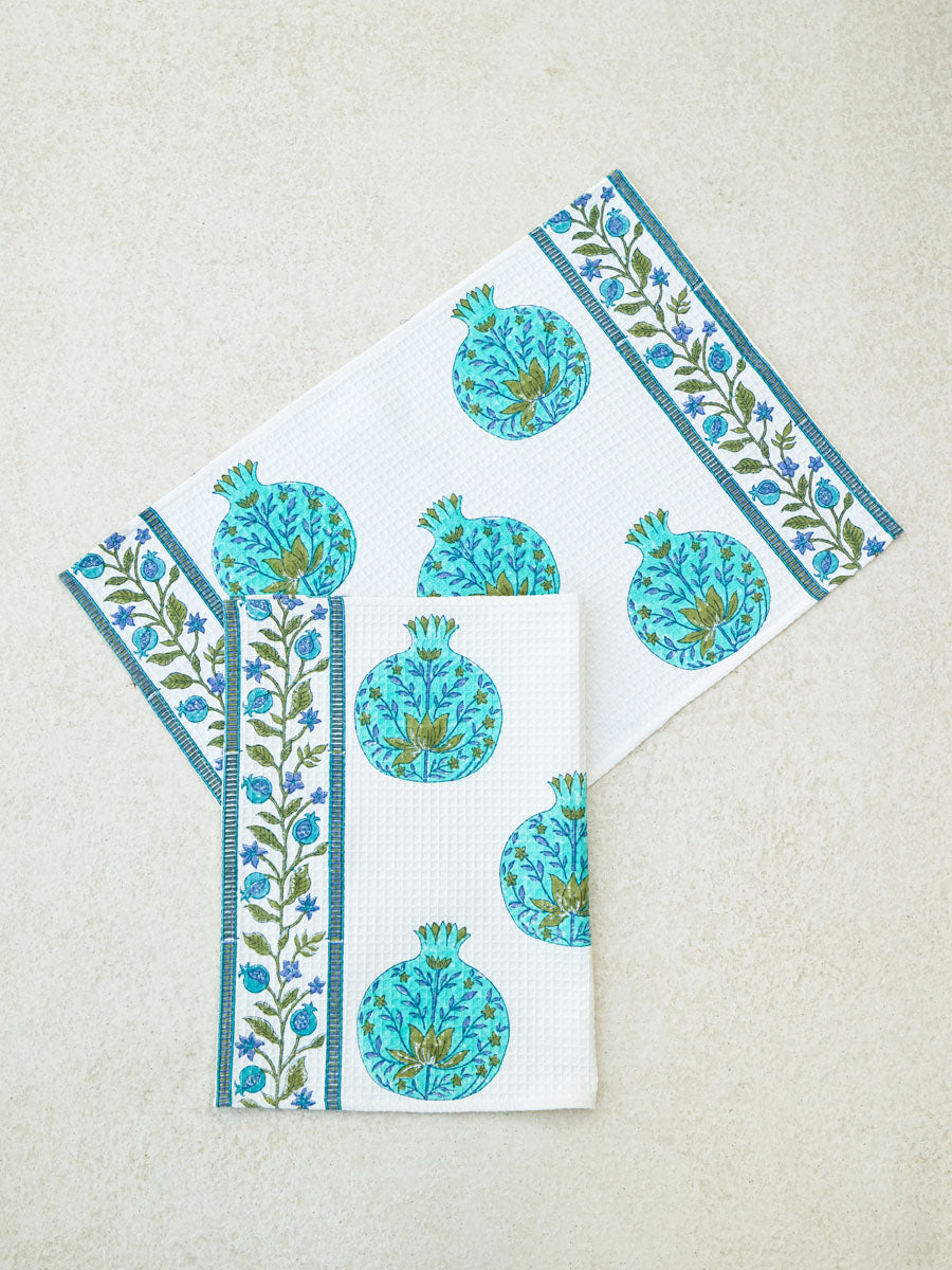 Set of 2 - Nav Turquoise Anar Waffle Cotton Hand Towel
