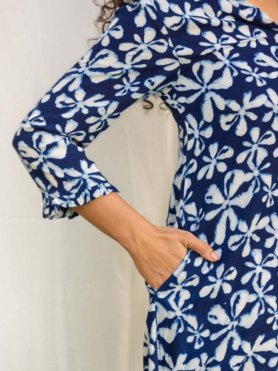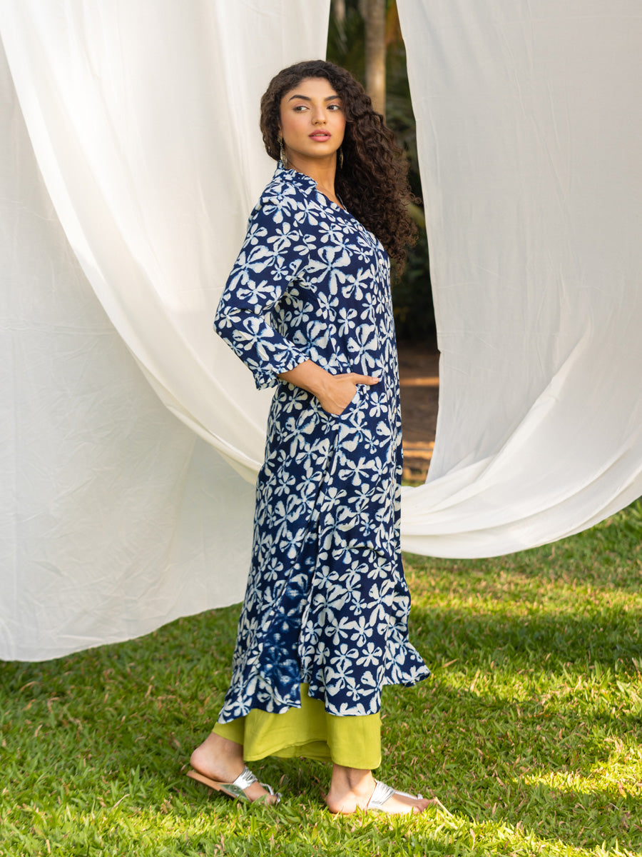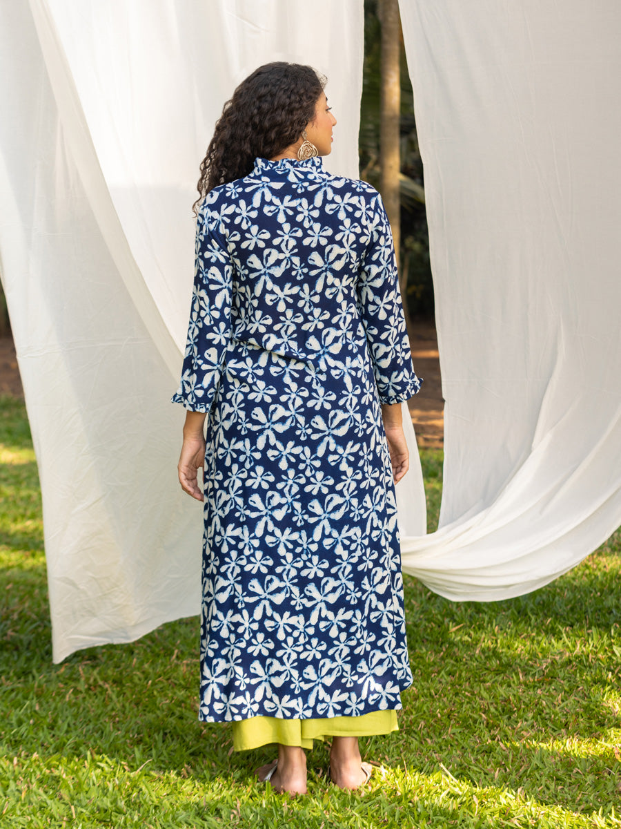 This garment is pre-washed prior to dispatchWash infrequently and separately in cold waterAvoid exposure to harsh sunlight and high moistureAvoid harsh detergents, bleach, soakingAvoid rubbing or scrubbing indigo-dyed fabricsAvoid wringing and twisting, instead rinse gentlyAlways flat dry on a hanger, in shadeIron on reverse and store them away from moistureAvoid wearing or washing Indigos with lighter coloursAt Pinklay, we pre-wash our Indigo garments 7-8 times before dispatch, yet there is a possibility for it to run colour in the first few washes, or run against the skin and light-coloured garments in extreme heat and moisture situations. This running of colour is harmless, characteristic of Indigo dyeing and generally does not fade the garment. For detailed step-by-step instructions, watch our Wash Care Guide for indigo merchandise.