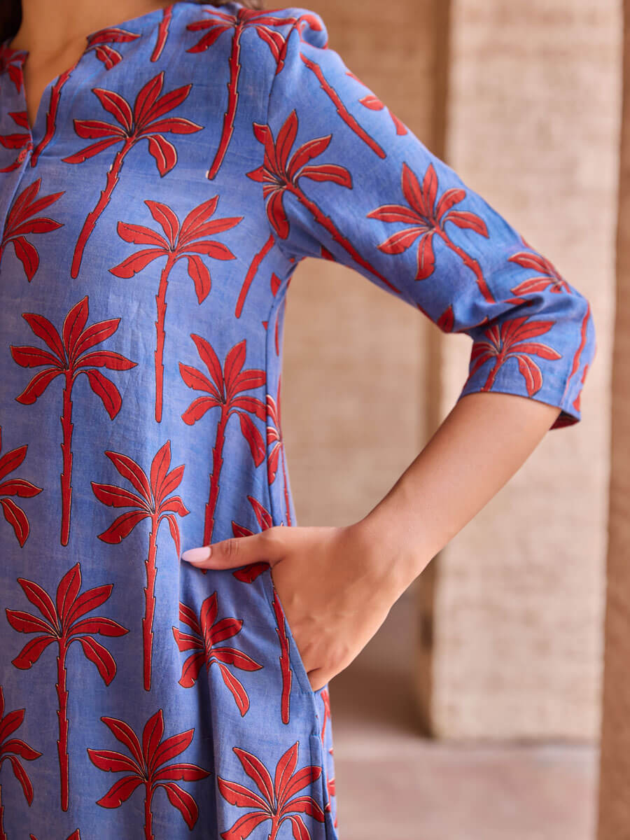 - Kurta features front buttons for ease and a comfortable, everyday neckline